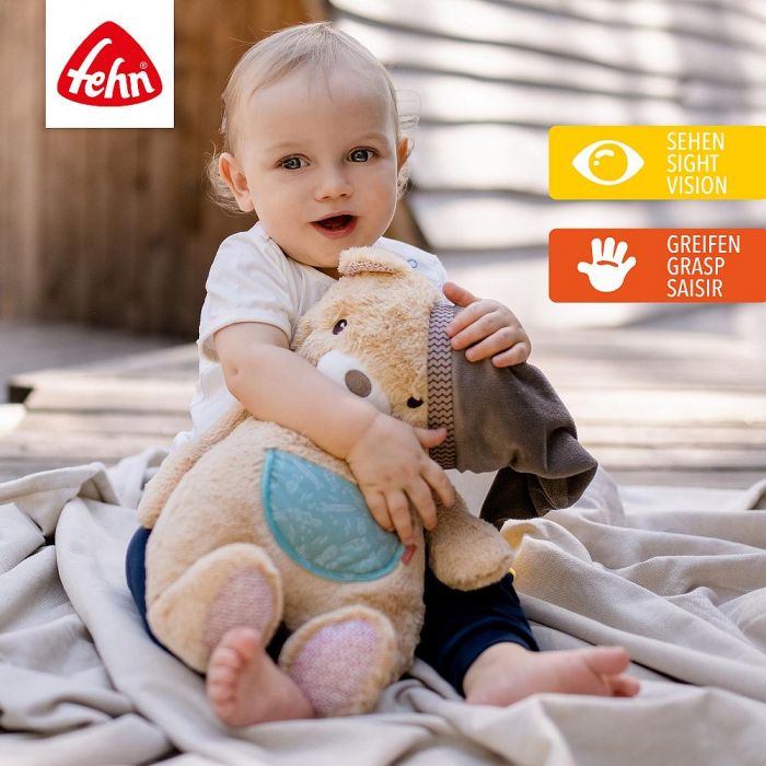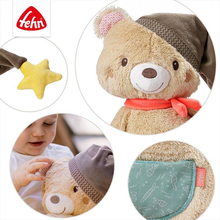 Introducing the Adorable Bruno Bear: the enchanting bear from the Bruno collection, who effortlessly captures hearts with his immense charm. With a perfect blend of grandeur, cuteness, and cuddliness, Bruno becomes an instant object of affection for babies. This endearing bear assumes the role of an ideal playmate during the day and a watchful guardian throughout the night, making each moment of your baby’s childhood truly unforgettable. At a generous size of 42 cm, Bruno offers an exceptional playing, cuddling, and nurturing experience, bringing immense joy and comfort to your little one. Wrapped in an aura of cuddles and warmth, this Fehn stuffed toy emerges as the quintessential first friend, ready to embark on countless adventures with your baby. Bruno isn’t just a toy; he’s a source of comfort, a companion for exploration, and a bundle of affection all rolled into one. From playtime giggles to peaceful slumbers, Bruno’s presence becomes an essential part of your baby’s journey, providing solace and merriment in equal measure. Elevate your baby’s early years with Bruno, the embodiment of all things cuddly and heartwarming. Embrace the joy of creating memories and forming an unbreakable bond with the perfect playmate – the cherished Bruno bear from Fehn’s exquisite collection.
