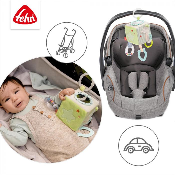 Engage your little one in a world of sensory exploration and developmental delight with our Motoric Activity Cube – designed for babies and toddlers aged 0 and up. Captivating and charming, this compact cube is a perfect companion for your baby’s early childhood development. The sea creatures within the cube come to life with delightful jingles and rattles, providing an engaging and interactive experience for your little explorer. Featuring soft, soothing colors and an array of different pendants, our activity cube invites endless play and discovery. Watch as your baby’s motor skills flourish through the various grasping options, enhancing their dexterity in a playful manner. Encourage self-cognition as your baby gazes into the small mirror, fostering early moments of self-awareness. The cube also introduces your little one to a world of delightful sounds with a rattle ring, crinkly paper, and a hidden dingdong element, sparking their curiosity and creativity. Designed for both home and on-the-go play, our activity cube comes equipped with a convenient C-ring. Easily attach it to the pram, infant carrier, or crib, allowing your baby to enjoy the enchanting playtime wherever you go. Invest in your baby’s developmental journey with our Motoric Activity Cube – a source of endless joy, discovery, and skill-building for your little one’s formative years.