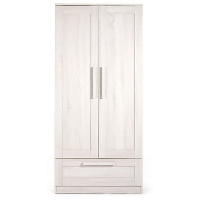 Clean lines and contemporary handles make the mamas & papas Atlas collection super sleek and contemporary. This 2 piece set including cotbed and dresser/changing unit is ideal for your baby’s nursery. The Atlas Cot converts into a toddler bed, for long-lasting use. The adjustable cot base comes with 3 height positions making it even easier to access baby, and safer than a traditional drop-side cot. The matching Atlas dresser makes an ideal changing station with the addition of a simple mat and then can be used just as a chest of drawers when baby gets bigger. The full-size wardrobe has a deep storage drawer underneath and 2 removable full-width hanging rails.
