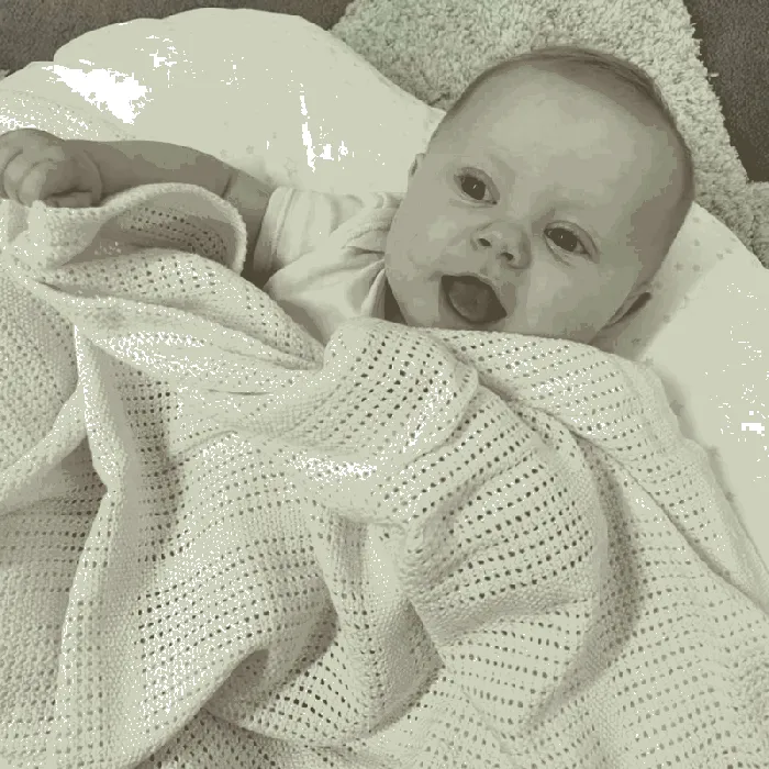 The traditional “cell” weave creates pockets of air that help regulate your baby’s temperature – keeping them warm in cooler months and cool when it’s warmer. It’s timeless, breathable, and beautiful. -
